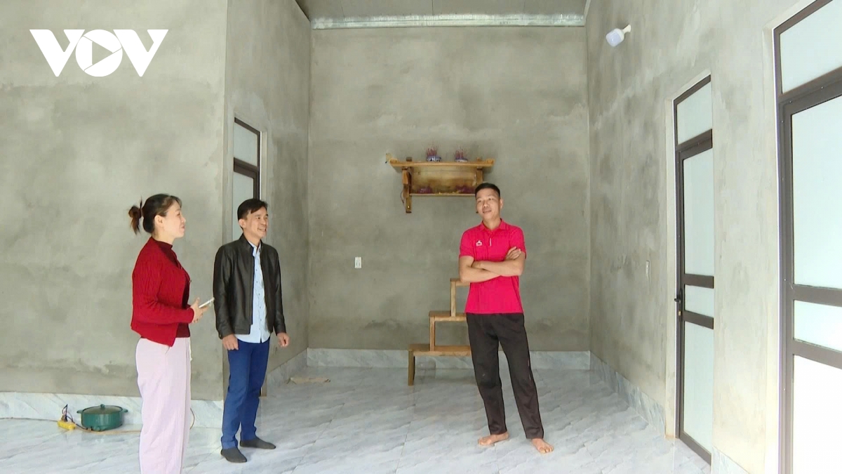 Các cháu nhỏ háo hức cùng bố mẹ dọn dẹp, trang trí để chuẩn bị đón Tết đầu tiên trong ngôi nhà mới: “Năm nay được Nhà nước hỗ trợ làm nhà mới để đón Tết, gia đình tôi rất vui. Con cái hào hứng lắm. Gia đình cũng đã thoát nghèo, chúng tôi sẽ cố gắng hơn nữa để phát triển kinh tế", anh Tuế phấn khởi.