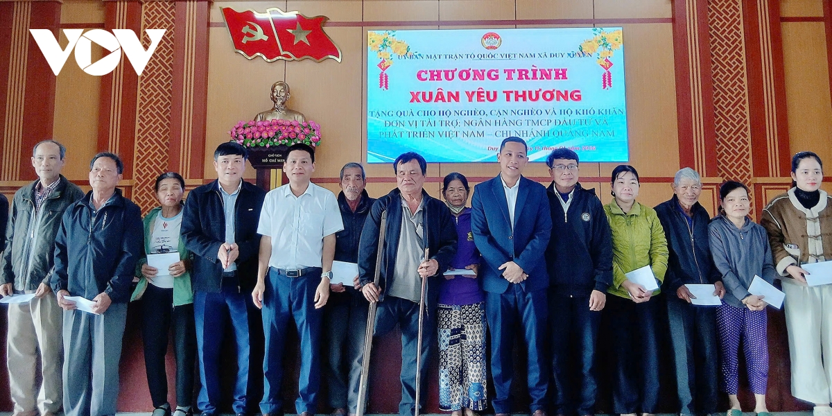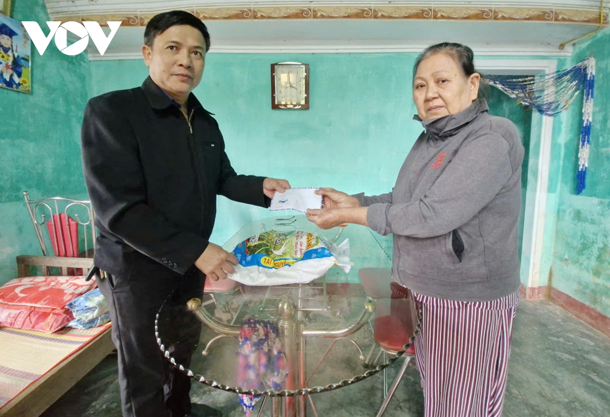 Đại diện Ủy ban Mặt trận Tổ quốc Việt Nam xã Duy Xuyên trao quà Tết
