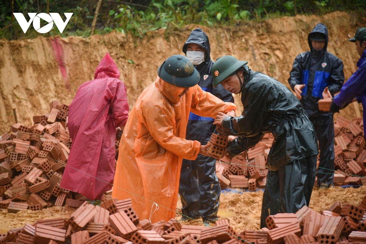 Cán bộ chiến sĩ không quản mưa nắng để xây lại nhà cho người dân