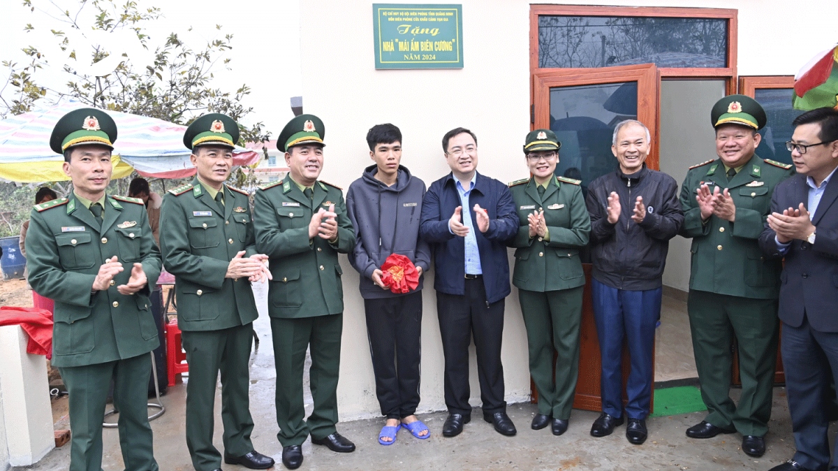 Dịp này, Bộ đội biên phòng tỉnh Quảng Ninh đã khánh thành và trao tặng “Mái ấm biên cương” trị giá trên 200 triệu đồng cho gia đình bà Lê Thị Huệ (77 tuổi, trú tại thôn 2, xã Vĩnh Thực).