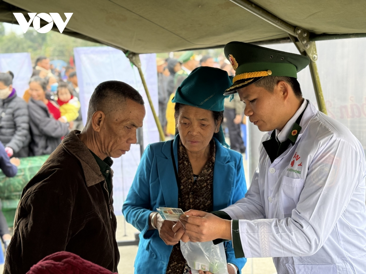 Cán bộ quân y Đồn Biên phòng cửa khẩu Chiềng Khương tư vấn sức khỏe cho bà con.