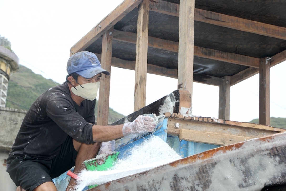 Không xa nhà bà Đạo, anh Phan Văn Sơn ở làng chài Hải Minh vẫn miệt mài, lách cách, vá trám những vết nứt nhỏ cuối cùng trên khoang tàu bị hỏng sau bão. Anh Sơn cho biết, sau khi trám bột đá xong, chờ thêm một ngày cho khô hẳn, tàu sẽ lại xuống nước để kịp mùa tôm hùm giống. Với anh, Tết là lúc biển “mở lộc”.