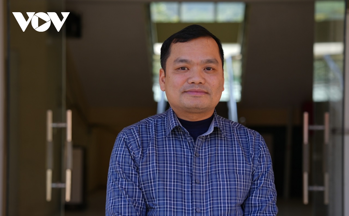 Ông Sung Văn Cấu, Bí thư Chi bộ, trưởng bản Mùa Xuân, xã Sơn Thủy trò chuyện cùng phóng viên Báo Điện tử Tiếng nói Việt Nam.