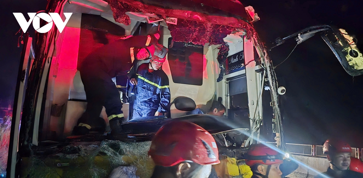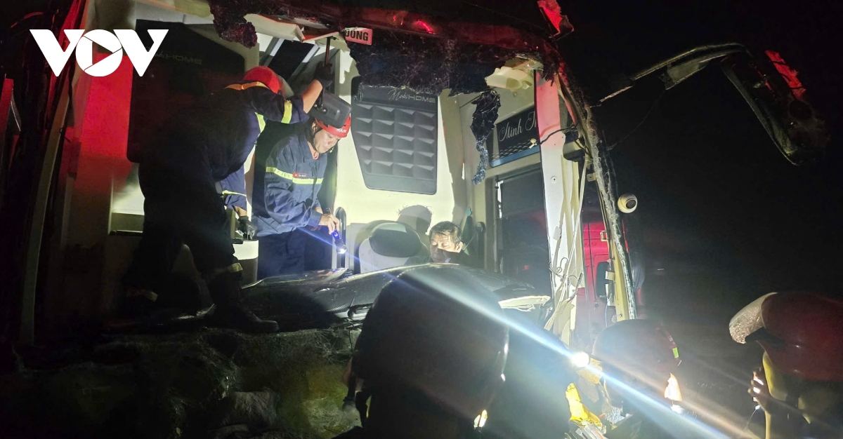 Nhận tin báo, lực lượng Cảnh sát Phòng cháy chữa cháy và cứu nạn cứu hộ, Công an thành phố Đà Nẵng điều động lực lượng đến hiện trường cứu nạn. Vụ tai nạn làm 4 hành khách bị thương, tài xế xe khách mắc kẹt trong cabin. Cảnh sát Phòng cháy chữa cháy và cứu nạn cứu hộ đã triển khai lực lượng, phương tiện di chuyển 4 hành khách ra ngoài. Đồng thời sử dụng thiết bị banh thuỷ lực để kích phần đầu cabin bị biến dạng lên đưa tài xế mắc kẹt ra khỏi xe. Nguyên nhân vụ tai nạn đang được cơ quan Công an điều tra, lãm rõ.